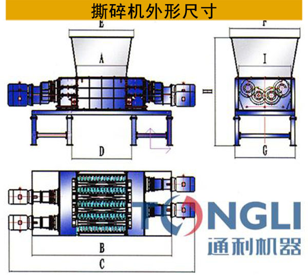 通利牌四軸撕碎機采用微電腦(PC)自動控制,設啟動、停止、反轉及載自動反轉控制功能,具有低速、轉矩、低噪音等特點,軸承座采用對開型式,拆裝換刀容易方便適合撕碎特、特厚難碎物料。